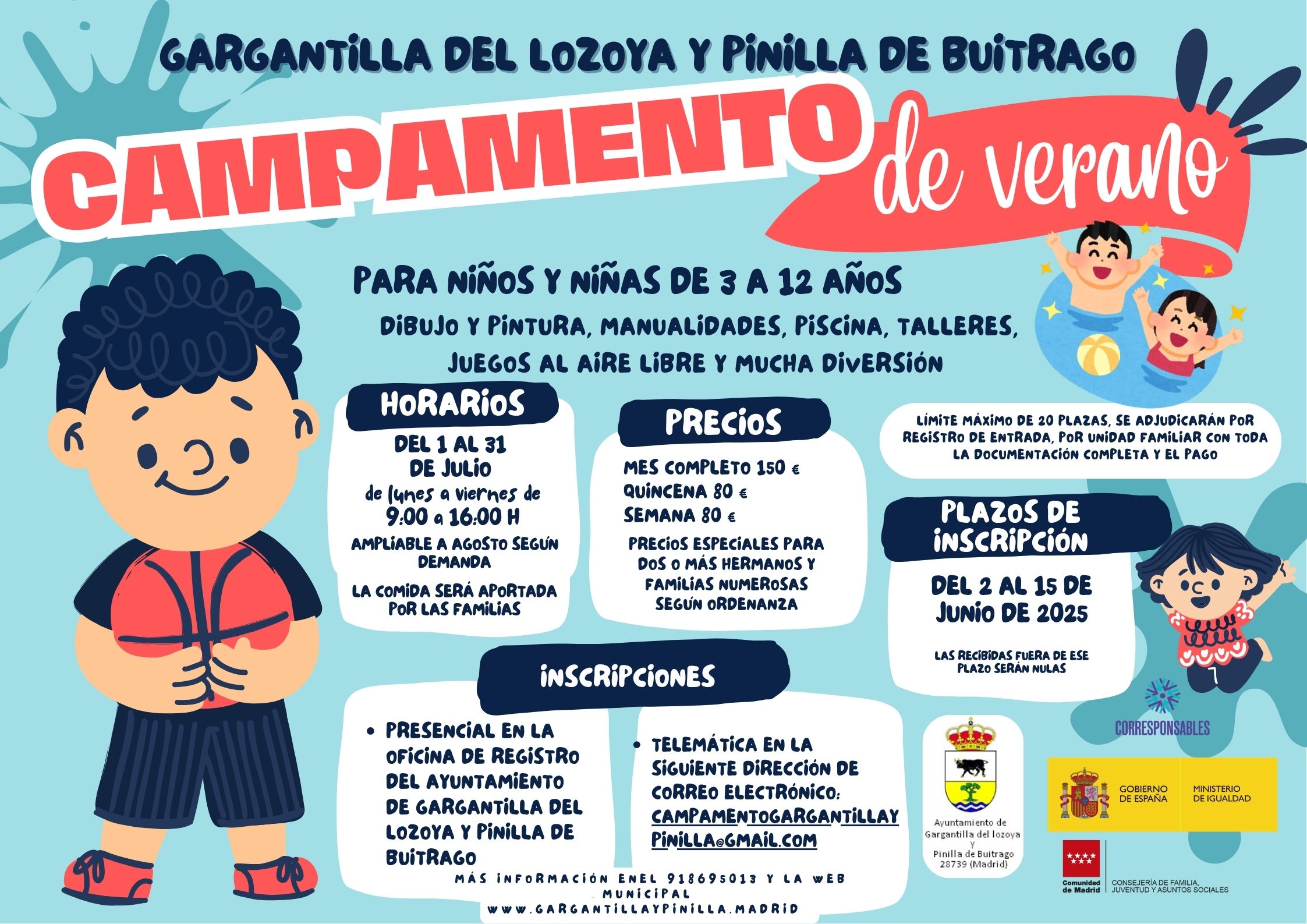 Telemática en la siguiente dirección de correo electrónico: campamentogargantillaypinilla@gmail.com • Coste: 150€ mes completo, 80€ semana/quincena () Bonificaciones según ordenanza municipal. (https://www.gargantillaypinilla.madrid/ordenanzas/ )