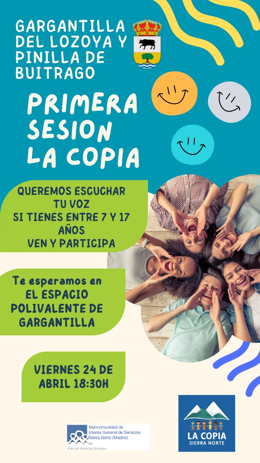 Os esperamos a todos los niños y niñas de 7 a 17 años el día 24 de abril de 2026 a las 18:30 en el Centro Polivalente de Gargantilla para escuchas vuestras voces