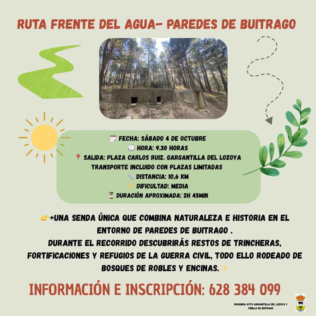 El Ayuntamiento de Gargantilla del Lozoya organiza una excursión muy especial el sábado 4 de octubre recorreremos la Ruta Frente del Agua, en Paredes de Buitrago, un itinerario cargado de naturaleza e historia.